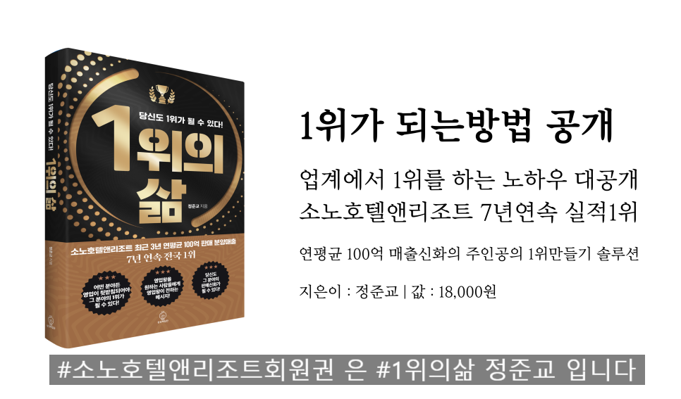 | 소노호텔앤리조트 회원권세일즈 15년차 영업인 7년연속전국1위 영업왕 #1위의삶 정준교입니다 (2) | 2025.02.11 |