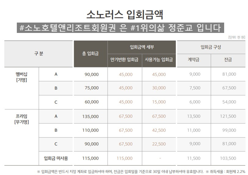 #소노호텔앤리조트 #리조트회원권 #프리미엄회원권