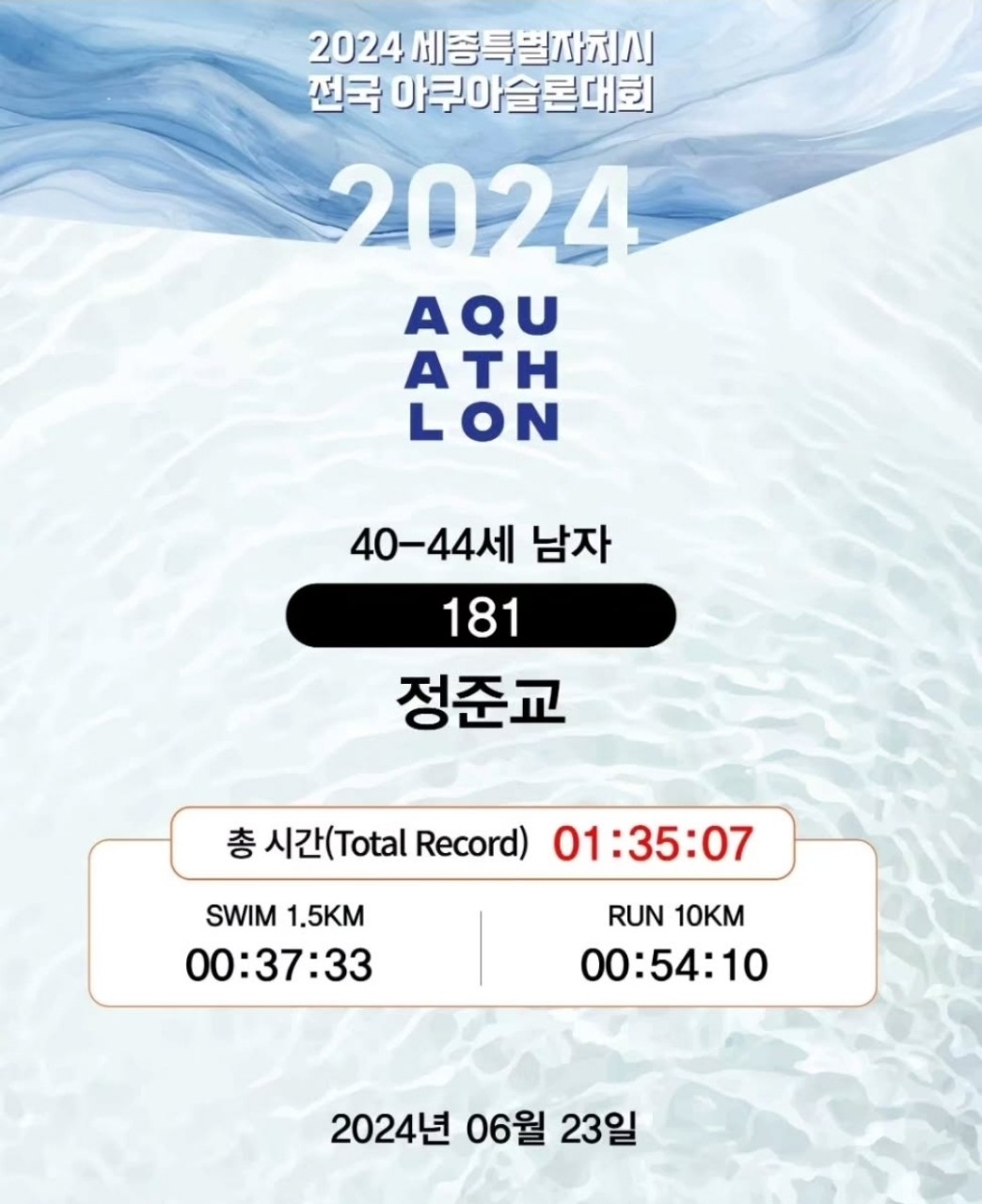 2024년 6월|세종시 아쿠아슬론 철인2종 완주
