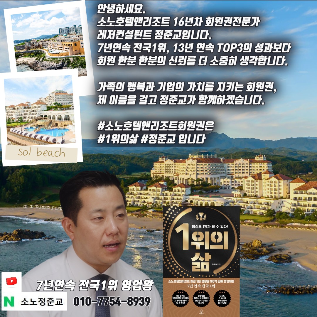 소노호텔앤리조트 분양영업국 7년연속 전국1위 1위의삶 영업왕 정준교 레저컨설턴트 입니다. 010-7754-8939 상시문의가능