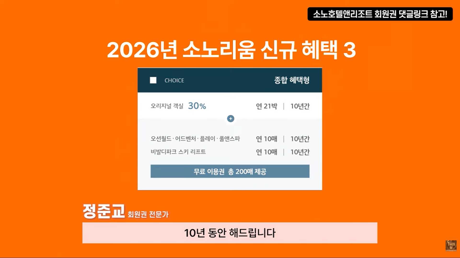소노호텔앤리조트 회원권 16년차 전문가 『1위의 삶』 정준교입니다.