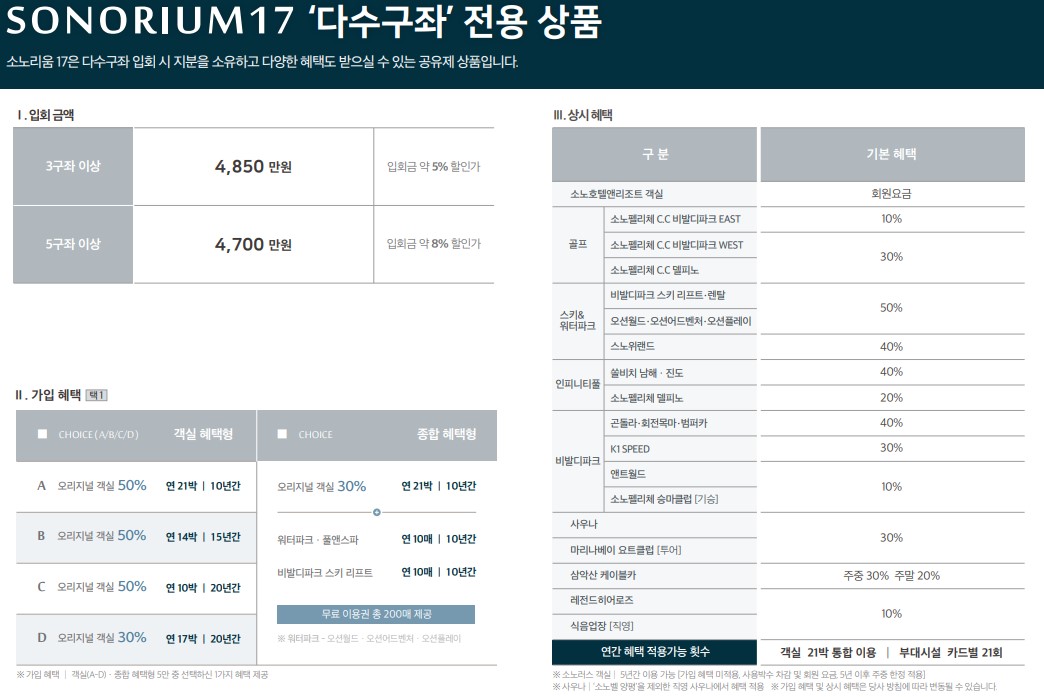 1. 소노리움17 회원권 기본 구성