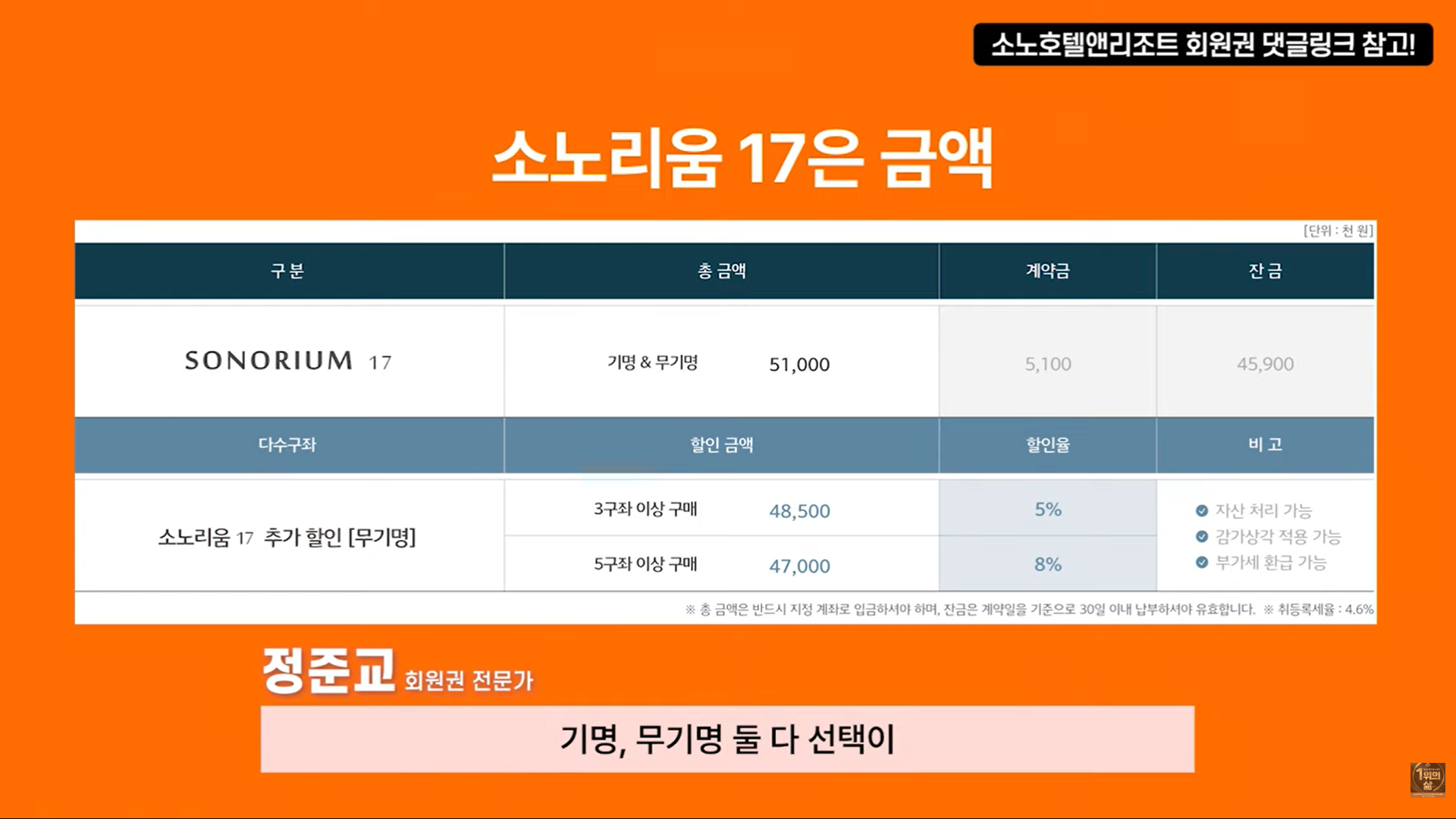 2026년 한정 소노리움17 회원권 완벽 정리
